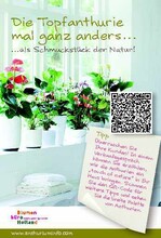 Im Mittelpunkt der Topfanthurienkampagne 2012 steht die Wirkung der Anthurie als Zimmerbaum, als Wellnesspflanze, als Schmuckstück der Natur und als pflegeleichte Mitbewohnerin. Neues Werbematerial für den Fachhandel macht auf Vielseitigkeit der Topfanthurie und das breite Sortiment aufmerksam.