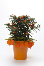 Solanum passt farblich optimal zum Thema und eignet sich für drinnen und draußen. Die Wirkung kann durch farbintensive Übertöpfe verstärkt werden.