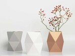 3. Preis: Geometrische Vase zum Falten. Aus einer einfachen Faltvorlage aus farbig bedruckter,recycelter Pappe lässt sich mit wenigen Handgriffen eine geometrische Figur falten. In Kombination mit einem kleinen Wasserglas oder einer 0,33 l Flasche wird die fertig gefaltete Form zu einer trendigen Vase. www.snug‐online.com PR