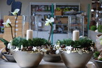 Jeweils zu den Farb- und Trendthemen sind florale Werkstücke präsentiert. Ein Schwerpunkt sind Exoten aus Südafrika und Asien. Insgesamt bietet der neue Abholmarkt von Vosteen großzügige Räume, eine große Auswahl an Gefäßen, Kerzen, Bändern, Exoten, Dekorationsartikel und technischem Bedarf sowie eine geschmackvolle Einrichtung und Warenpräsentation.