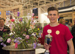 Die Jury bescheinigte dem Tobias Niefenecker großes Talent, einen geschickten Umgang mit Blumen und eine spannende Technik. „Eine enorme Leistung!“, sagte Erni Salzinger-Nuener, Präsidentin des Fachverbandes Deutscher Floristen, Landesverband Bayern, zu den Arbeiten des Gewinners. „Tobias weiß mit Blumen und Farben umzugehen. Er kombiniert die unterschiedlichen Blumen perfekt miteinander und versteht es, jede einzelne Blüte optimal zur Geltung zu bringen.“ Für die Arbeit „Rot ist die Liebe“ gestaltete der Nachwuchsflorist ein Korsett aus geflochtenem Kupferdraht und Blüten – ganz in der Farbe der Liebe. Damit erreichte er die volle Punktzahl.