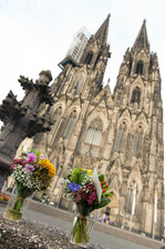 Auch Fleurops Junge Wilde machten mit. Am 29. Juni fuhren sechs Floristen aus dem Team - Jürgen Herold, Katharina Schumm, Oliver Ferchland, Nicolaus Peters, Christina Hannawald und Thomas Gröhbühl - in einem Bus quer durch Deutschland und setzten in mehreren Großstädten Sträuße aus. Ein Fotograf begleitete das Team und dokumentierte das Projekt.