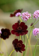 - Cosmos atrosanguinea ist ein sommerblühendes Knollengewächs mit schlanken Stängeln und samtigen, dunkelroten Blüten, die an einblütige Dahlien erinnern. Da die Blüten nach Schokolade duften, wird dieses Knollengewächs mitunter auch als Schokoladen-Kosmee bezeichnet.