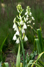 - Ornithogalum saundersiae (großer Milchstern) wird ungefähr 1 m hoch und hat weiße, schirmförmige Blüten, die je nach Witterung von Ende Juli bis Anfang September blühen.