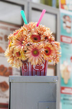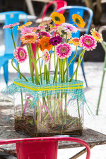 Rudi Tuinman und Pascal Koeleman und ihr 2Dezign-Team waren für die Kampagne „Coloured by Gerbera“ (www.colouredbygerbera.nl) zum Fotoshooting in Florida. Die Hauptakteurin war natürlich die Gerbera. Mit buntem Plastikbesteck, Trinkhalmen und Pappbechern – und vielen unterschiedlichen Gerbera-Sorten – ist fröhliche Sommerfloristik entstanden, die gute Laune verbreitet.