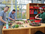 Als ausgebildete Gärtner in den Fachrichtungen Zierpflanzenbau oder Baumschule ist es für die Studierenden oft eine neue Erfahrung, sich handwerklich mit floristischer Gestaltung zu beschäftigen.