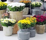 Die Züchter haben sich intensiv mit der Topfchrysantheme beschäftig, daher gibt es neben den klassischen Farben immer mehr auffällige neue Farben wie Lemon, Lachs, Bronze, Tiefviolett, und viele zwiefarbige Sorten. Auch die außergewöhnlichen neuen Blütenformen machen die Topfchrysantheme zu einem Blickfang für drinnen und draußen.