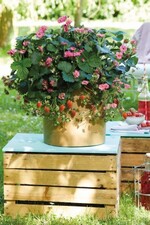 Wenn eine Pflanze in diesem Sommer auf der Wunschliste eines Gartenliebhabers stehen muss, dann ist es 'Summer Breeze Pink' von ABZ Seeds. Diese dekorative, aus Saatgut kultivierte F1-Erdbeere kombiniert doppelt gefüllte, rosenähnliche Blüten in einem leuchtenden Pink mit einer Fülle an frischen Sommerfrüchten. 'Summer Breeze Pink' garantiert andauernden Farbgenuss, da die Pflanze reichlich Trauben aus gefüllten Blüten bildet, die ihre Blütenblätter nicht verlieren. Die rosa Blüten und roten Früchte ergeben einen sehr trendigen Farbkontrast, der die Blicke auf sich zieht.