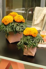'Little Duck Orange' ist eine natürliche Zwergsorte mit riesigen, orangefarbenen Blüten. Der in Thailand ansässige Züchter AmeriSeed ist auf Hybriden von Tagetes patula und Tagetes erecta spezialisiert. Da 'Little Duck Orange' sich sehr kompakt aufbaut, kann sie ohne den Einsatz von Hemmstoffen angebaut werden und eignet sich auch hervorragend für die Beetbepflanzung und für Gefäße. Jede riesige, gefüllte pomponartige Blüte ist eine Schönheit für sich. In Beeten gruppiert bildet sie einen spektakulären Blütenteppich.