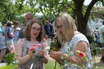 Jede Menge zu tun hatten die ehrenamtlichen Akteure des Fachverbands Deutscher Floristen Landesverband Hessen-Thüringen beim Blumenbinde-Workshop „Floral geschmückt“. Er fand am Pfingstsonntag und –montag beim Fürstlichen Gartenfest auf der Obstwiese in Eichenzell statt. Unter fachkundiger Anleitung konnten die Besucher/innen Hut- und Kopfschmuck anfertigen.