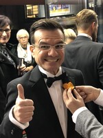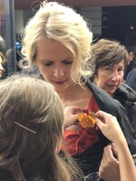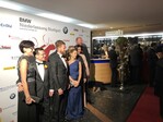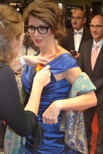 Unmittelbar am roten Teppich in der Stuttgarter Liederhalle überreichten Floristen des #floralproject3.0-Teams den Damen und Herrn florale Anstecker für Abendkleid, Frack und Smoking. Die Accessoires waren aus orangefarbigen Vanda-Blüten und Blütenblättern von Nelken und Chrysanthemen gefertigt und auf die prächtige blumige Balldekoration abgestimmt. Die blumigen Anstecker betonten die Wertigkeit der Blume und des floralen Handwerks und waren Werbung für den Berufsstand.