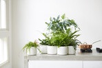 Für die Präsentation wird empfohlen: Zum Beispiel modern in Reihen, und zwar verschiedene Farne in identischen Töpfen, wie in einem Labor. Verkaufsfördernd ist auch, verschiedene Einsatzmöglichkeiten zu zeigen: hängend und „auf Wasser“ (die Verdunstung sorgt für mehr Luftfeuchtigkeit) und in einer Mooskugel (Kokedama). Nestfarn und Hirschgeweihfarn lassen sich gut handhaben, wenn sie zum Beispiel an einem Stück Holz befestigt werden.