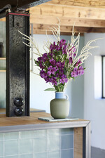 Nach dem freien, unverbindlichen Charakter des Sommers, bietet der September wieder Struktur und weckt das Bedürfnis nach Ordnung. Für das Styling der Alstroemerie bedeutet dies Ruhe und Rhythmus, um die reine Ausstrahlung der Blüte möglichst optimal zur Geltung zu bringen. Es gehört zum Zeitgeist, dass das Interesse für Nachhaltigkeit wächst, und das Verantwortungsgefühl zunimmt. Dies findet Ausdruck in der Verwendung von recycelten Gefäßen als Vasen (bemalte Flaschen), oder deren multifunktionalem Einsatz (Vasen, die auch als Krug oder Karaffe dienen können). So entsteht ein harmonisches Ganzes, in dem Übersicht herrscht. Dieser Eindruck wird von Farben unterstützt, die recht nüchtern sind, wie Weiß, Grau, Schwarz, Blau und ein Hauch Rotbraun.