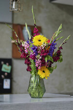 In der Kampagne "Blumenagenda" wurde das Sommertrio aus Gladiole, Löwenmäulchen und Sonnenblume für den Juli 2020 gewählt. Mit ihrer farbenfrohen Ausstrahlung und den robusten Formen eignen sich die Blumen für fröhliche Sommerfloristik vom Pflückstrauß bis zur Tischdekoration. Ob gemischt oder mono, eine Vasenfüllung wird schnell zum Mittelpunkt jeder Sommerparty. Nähere Infos und Fotos zum Download finden Sie hier: https://www.blumenbuero.de/kampagne/sommerblumen-stehen-im-juli-auf-der-blumenagenda-0