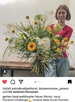Eine besonders treue Teilnehmerin der Challenge ist Imke Matthiesen, Inhaberin von Blumen Hansen, Sylt. Mit fast 28.000 Followern geht sie meist als Favoritin ins Rennen, wobei es bei der zweiten Ausgabe der #florierenchallenge zum Schluss ein enges Kopf-an-Kopf-Rennen gab.