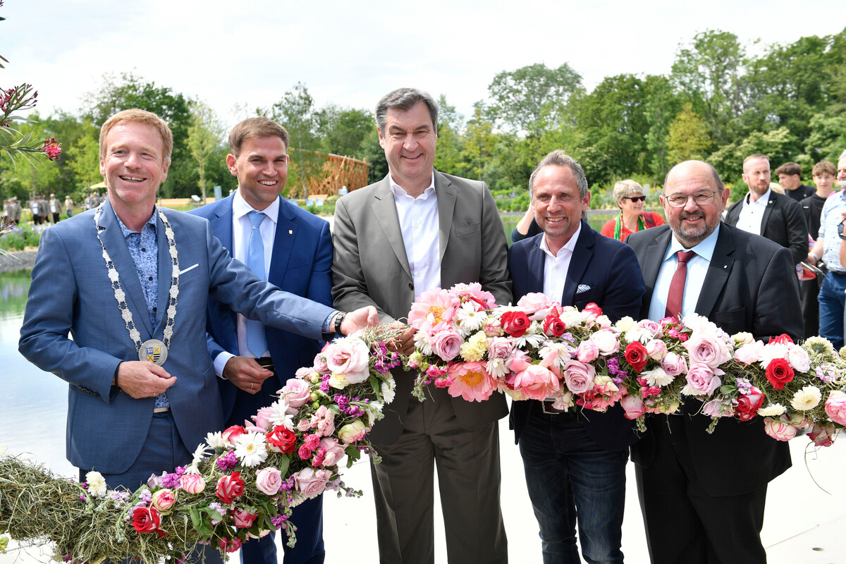 Die offizielle Eröffnung der Landesgartenschau fand im neuen Bürgersaal statt, wo Bayerns Ministerpräsident den „echten Mehrwert betonte, der durch Landesgartenschauen für die Bevölkerung geschaffen wird“. Konkret sagte er: „Die Gartenschau ist auch Motor für Stadtentwicklung: Sie verbindet zwei Gemeindeteile durch intelligente Wegesysteme. So entsteht echter, dauerhafter Mehrwert für ein besseres, schöneres und angenehmeres Leben. Das ist gut investiertes Geld und deshalb haben wir als Freistaat die Förderung weiter erhöht. Und die Landesgartenschau ist immer auch Leistungsschau des Gärtnerhandwerks.“