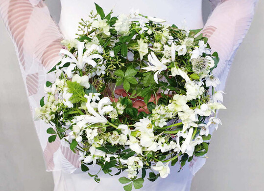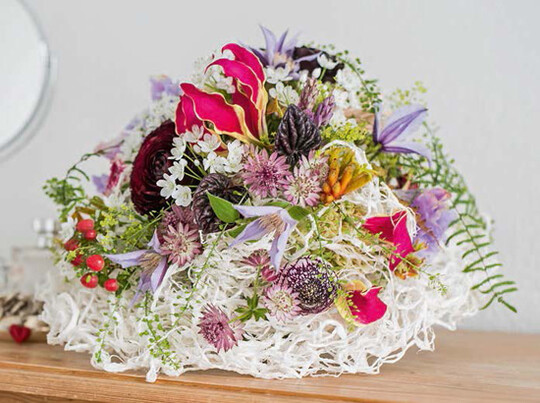Beeinflusst von Social Media, verlangen Bräute nach Eukalyptus, Trockenblumen und Disteln, die zu Blumenbündeln arrangiert sind. Ganz schön eintönig und oftmals nicht einmal bräutlich. Wer solche Wünsche unwidersprochen erfüllt, vermeidet zeitintensive Diskussionen. Aber ist es nicht auch die Aufgabe von Fachleuten, auf handwerklich und gestalterisch hochwertige und vor allem blumige Alternativen aufmerksam zu machen? Ja, das ist es, ist Gabriele Haufe überzeugt.