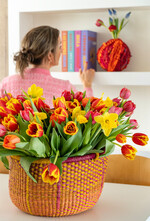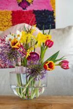 Und einige scheinen tatsächlich wie gemacht für diese Aufgabe, beispielsweise Tulpen. Gerade in der kalten Jahreszeit, wenn es draußen trist und grau ist, bieten die ausdrucksstarken Schnittblumen eine riesige Palette an lebendigen Farbtönen. Für den „Viva la Vida“ Trend mischt man am besten möglichst viele unterschiedliche Sorten oder kombiniert sie mit anderen Schnittblumen. Als Vasenpartner bieten sich Ranunkeln wunderbar an. Schön machen sich auch gelbe Narzissen oder die Zweige frühlingsblühender Gehölze, beispielsweise von Forsythien oder Weidenkätzchen.