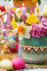 Mit farbenfrohen Fliesen, Mosaiksteinen, pigmentiertem Holz, bunten Textilien mit Fransen, Quasten und Rüschen sowie geflochtenem, gefärbtem Schilf oder Raffiabast unterstreicht man den gewünschten Effekt. Blumen dürfen bei einer solchen Inszenierung natürlich auch nicht fehlen. Bei floralen Arrangements lautet die Zauberformel: Farbe, Farbe und nochmals Farbe ...