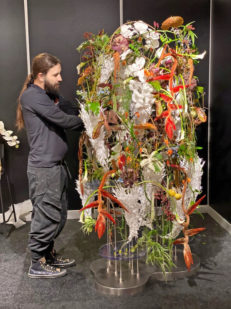 1Christopher Ernst, der sich als Deutscher Meister der Floristen 2022–2024 für die Teilnahme qualifiziert hatte und vom FDF Bundesverband nominiert wurde, überzeugte die Jury vor allem mit seiner kreativen Eigenständigkeit und seiner konsequent erkennbaren stilistischen Handschrift.