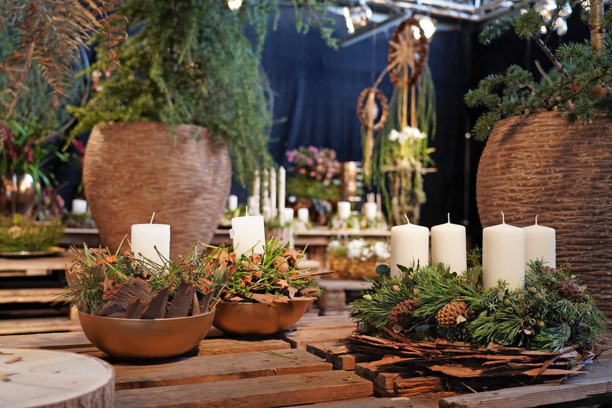 Das Herzstück der Ideenwoche ist die Ausstellung im Pflanzenforum Süd-West. Exklusiv für Fachbesucher und Wiederverkäufer präsentiert Josef Dirr über 100 floristische Meisterwerke in atmosphärisch gestalteten Themenwelten. Alle Arrangements sind praxistauglich konzipiert: Materialien können direkt bei den angeschlossenen Großhändlern erworben und sofort für den Adventsverkauf umgesetzt werden.