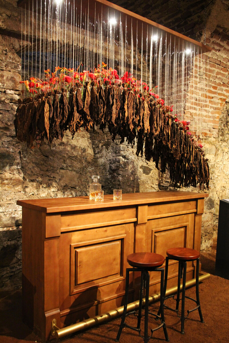Auf diesem Hintergrund sollten sie in einen fiktiven Dialog mit dem Baum treten. Welche Aspekte meiner Person fühlen sich zum Baum hingezogen, mit welchen Aspekten kann ich gar nichts anfangen. Was weckt Widerstand in mir? Es ging darum, ein Gespräch zu beginnen, Texte dazu zu formulieren. Im nächsten Schritt wurde diese Korrespondenz in die florale Gestaltung einer Bar-Situation an einem zuvor festzulegenden Ort umgesetzt. Texte, Recherchehintergründe und inhaltliche Prozesse waren der jeweiligen Arbeit zugeordnet. So konnten die Besuchenden die Prozesse nachvollziehen und ein tieferes Verständnis für die Gestaltung entwickeln.