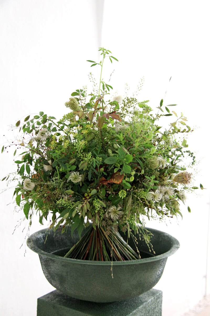 In Zwettl versteht man unter einem Strauß ein gebundenes florales Werkstück mit einer definierten Bindestelle. Die Arbeiten der Meisterinnen zeichnen sich durch eine luftige, leichte und natürliche Anmutung aus. Besonders bei den Straußformen fällt der achtsame Umgang mit den pflanzlichen Werkstoffen auf. Gesammelte Naturmaterialien finden ebenso ihren Platz wie sorgfältig kultivierte Besonderheiten. Jede Blüte ist präzise positioniert, die Farbkonzepte sind mit großer Sorgfalt durchdacht und harmonisch abgestimmt.