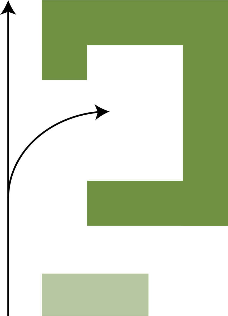 Plötzliche, also geknickte Abzweigungen fordern Kopfentscheidungen und lenken ab von den Produkten. Im Prinzip also eine eher ungeeignete Vorgehensweise, wenn es um die emotionale Ansprache gehen soll. Gleichzeitig helfen aber auch klare Gliederungen, sich rasch im Raum zu orientieren, und fördern Übersichtlichkeit. Geometrische Strukturen sprechen zwar mehr den Kopf als das Gefühl an, vermitteln aber auch optische Ruhe. Bei sehr vielen Produkten wie Saisonpflanzen oder vielen Sortimenten kann dies ein probates Mittel gegen Reizüberflutung sein.