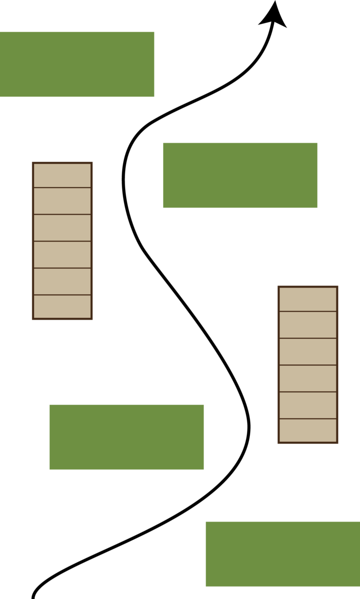 Flächen und Strecken: Eine wichtige Erkenntnis: Flächen sind schwieriger zu gestalten als Strecken. Steht man vor einer Fläche, muss das Auge (also das Gehirn) alles auf einmal speichern, in kurzer Zeit viele Informationen verarbeiten. Geht man eine Strecke entlang, passiert das nach und nach (Verweildauer, Sie wissen schon).