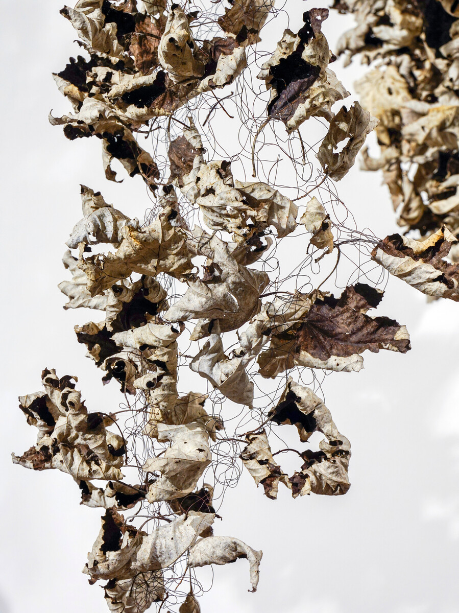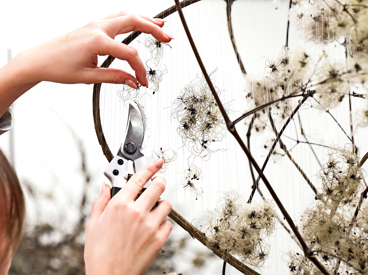 Im Inneren des Kokons von Theresa Arndt finden zerbrechliche weiße Cyclamen-Blüten Schutz vor dem Winter. © Kerstin Gramberg