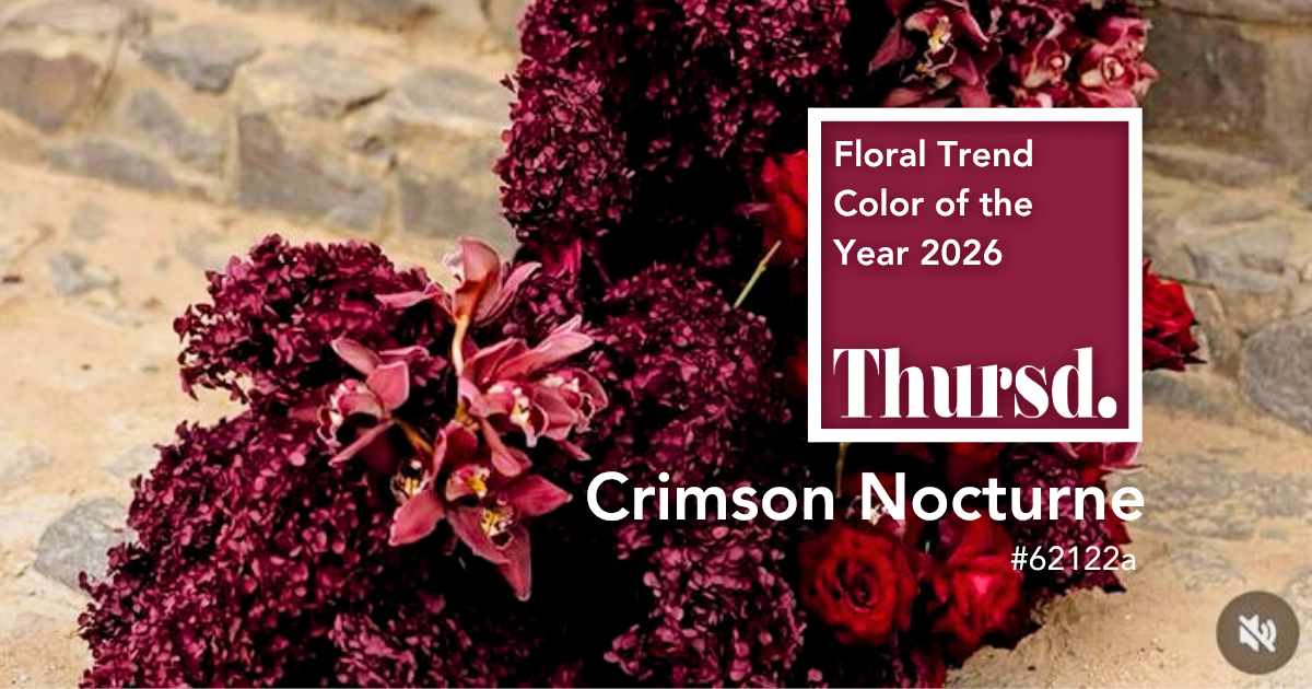 Die Onlineplattform Thursd enthüllt die florale Trendfarbe des Jahres 2026: Crimson Nocturne – A Pulse Deep Within (#62122A). Man könnte es als tiefes, gedämpftes Purpur mit einem Hauch von Kakao beschreiben – elegant, geerdet und zeitlos.