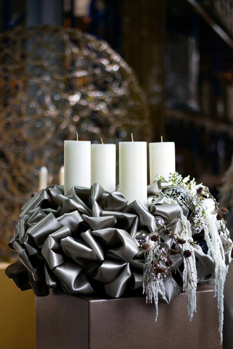 Elegante Kränze, natürliche Arrangements und mutige Farbakzente: Die Adventsausstellung beim Bedarfshändler Strecker in Renningen, die Floristmeisterin Anja Ersing gestaltete, liefert Floristen wertvolle Impulse für ein erfolgreiches Saisongeschäft.