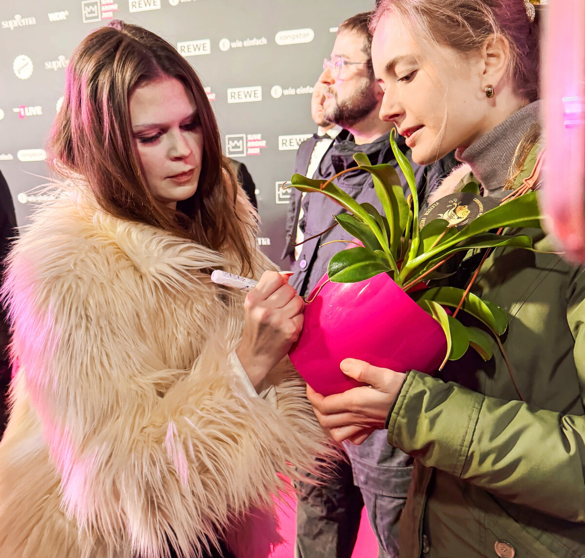 Direkt beim Eintreffen der Gäste wurde es interaktiv: In kurzen Interviews durften die Stars und Nominierten ihre Lieblingspflanze aus drei Vorschlägen auswählen – eine Aktion, die für viele sympathische Geschichten und spontane Gespräche sorgte. Zusätzlich signierten die prominenten Gäste exklusive 1LIVE Krone x 1000 gute Gründe-Pflanztöpfe, die im Anschluss über die Community der Initiative „1000 gute Gründe“ verlost wurden.