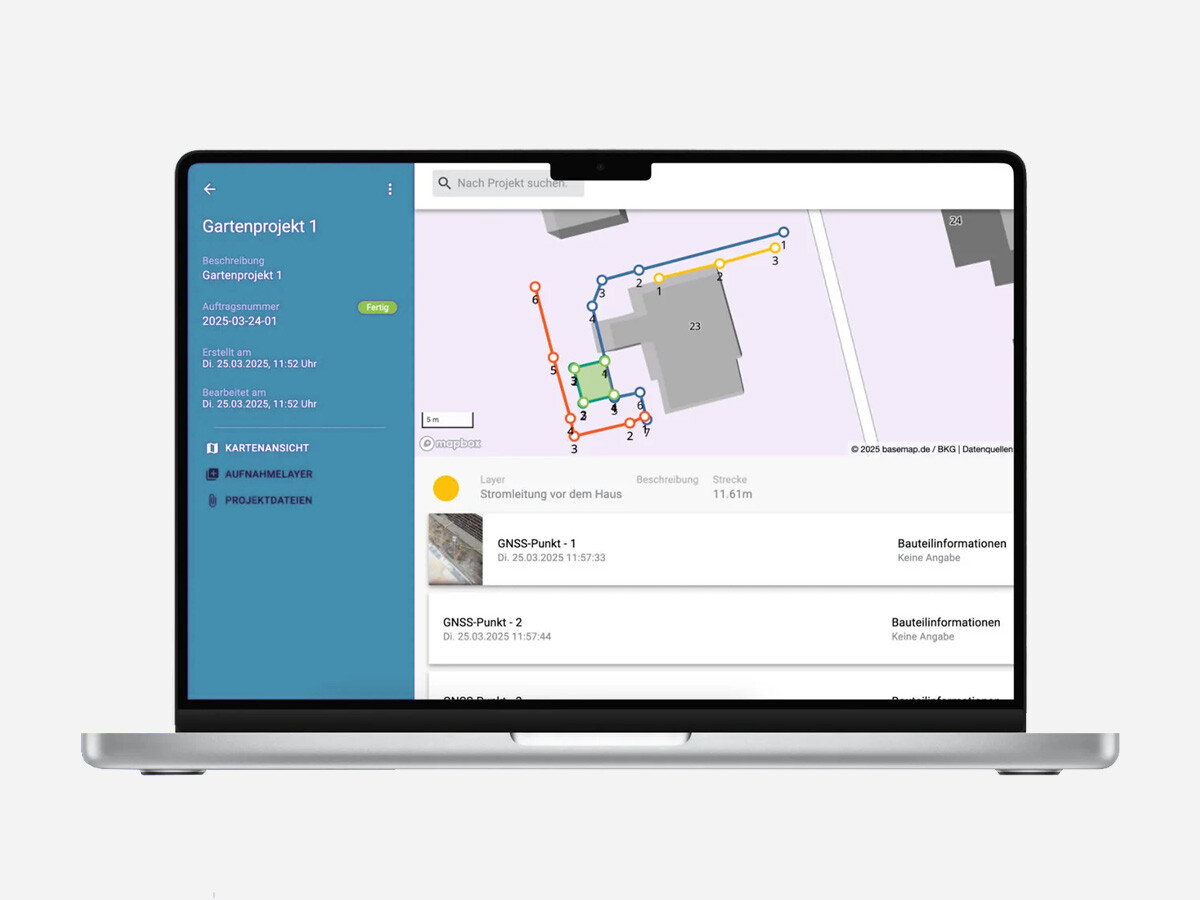 - Synchronisieren: Alle Daten fließen in Echtzeit in die 3tag Cloud. Dort können sie verwaltet, in gängige CAD-Formate exportiert oder für die Abrechnung aufbereitet werden.