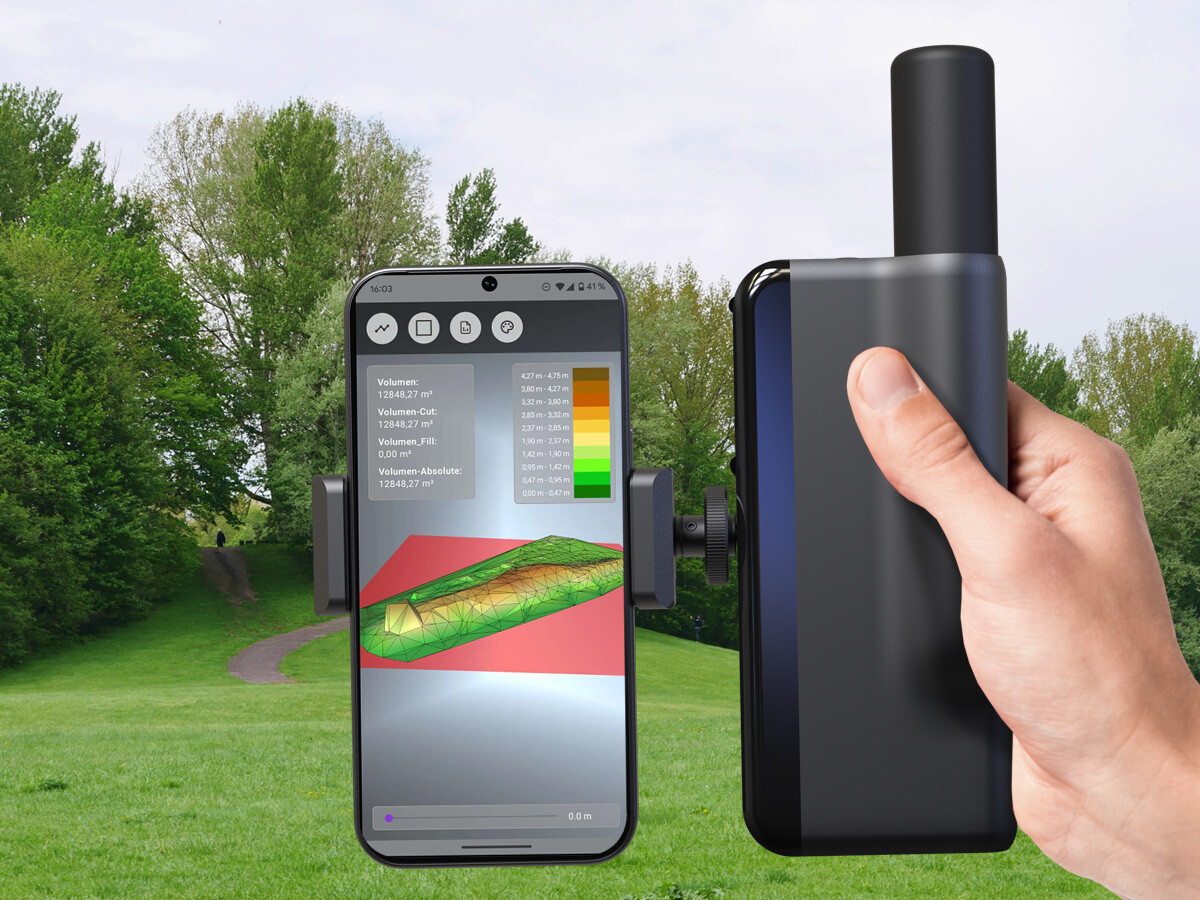 - Volumenvermessung: Ob Erdaushub oder Schüttgut - berechnen Sie Massen direkt vor Ort. Das schafft Transparenz bei der Abrechnung und Sicherheit in der Logistik.