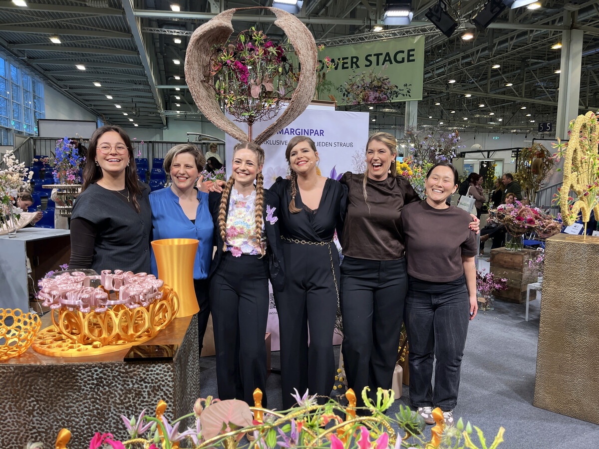 Das „She Blooms“-Trio aus Elisabeth Schoenemann aus Deutschland, Hanneke Frankema aus den Niederlanden und Sara-Lisa Ludvigsson aus Schweden setzte mit innovativem Handwerk, starken Botschaften und gegenseitiger Unterstützung ein Zeichen für mehr Frauenpower in der floristischen Öffentlichkeit.