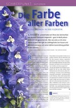 In „florieren!“ Nr. 5/2008 haben wir Ihnen das Sommerfest von Blumen Dahlmann vorgestellt – ganz in Weiß präsentierte sich der ganze Betrieb. Aber wie wäre es mit einer Aktion in Blau? Blau gilt als Lieblingsfarbe von Frauen und Männern und passt mit seiner kühlen Ausstrahlung perfekt in den Sommer.