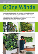 Grüne Wände erobern die Innenräume. Esprit in Düsseldorf zum Beispiel präsentiert sich mit einer begrünten Wand und das Sporthaus CJ Schmidt in Husum hat eine Mooswand über zwei Etagen installiert. In Blumengeschäften sorgen grüne Wände nicht nur für Am biente, sie können auch zum Geschäftsfeld werden. Größere Flächen erfordern spezielles Know-how, kleinere Elemente gibt es fertig oder zum Selbstaufbau.