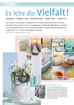 Der Trend zur Individualität ist ungebrochen, niemand scheint Vorschriften zu machen. Das Bloom’s-Team spricht von einer nie dagewesenen Vielfalt der Möglichkeiten. Und doch lassen sich Trendthemen aus dieser Vielfalt herausfiltern. Für den Frühling 2015 bietet sich „luftig leicht“ an – mit viel Licht, Helligkeit und Weiß.