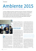 Der Blick über den Tellerrand ist auch für Floristen unglaublich wichtig – die Ambiente macht es möglich. Sie umfasst drei Messen unter einem Dach: Dining, Giving und Living. Alle Themen greifen ineinander. Sie vermitteln einen wertvollen Überblick über angesagte Produkte, den Zeitgeist und die Stilmerkmale der kommenden Monate. 4811 Aussteller aus 94 Ländern präsentierten 2015 ihre Besonderheiten, die Stimmung bei Ausstellern und Besuchern war gleichermaßen gut. Partnerland der Messe waren die USA. In einer Sonderschau, gestaltet von Designer Scott Henderson aus Brooklyn, wurde amerikanisches Produktdesign präsentiert. Ehrengast am USA-Tag war die Schauspielerin, Regisseurin und Oscar-Preisträgerin Helen Hunt. Sympathischsouverän...
