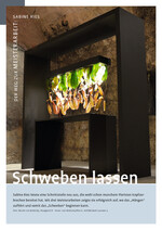 Schon die Bezeichnungen weisen darauf hin: Hängen wird oft als Synonym von "runterhängen" oder baumeln verstanden und ist somit meist gleichgesetzt mit fallendem, vielleicht sogar erschlafftem Ausdruck. Schweben dagegen ist durchweg positiv behaftet, vermittelt die Idee von "Erhabenheit" und genießt daher eine gänzlich andere Wertschätzung. Sabine Ries nutzte das breite gestalterische Fundament, das sie in ihrer Meisterausbildung erhielt, und ging diesem Phänomen auf den Grund. Sie wollte herausfinden, welche gestalterischen Eckwerte gesetzt werden müssen, damit eine Bewegung, die sich von oben nach unten entwickelt, den gegensätzlichen Anschein macht.