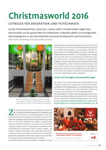 Auf der Christmasworld (29. Januar bis 2. Februar 2016) in Frankfurt/Main zeigen über 900 Aussteller aus der ganzen Welt ihre Kollektionen. Außerdem gehört ein umfangreiches Rahmenprogramm zu der internationalen Leitmesse für Dekoration und Festschmuck.