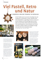 Auf der TrendSet waren wie erwartet viel pudriges Rosa und rauchige Grau- oder Blautöne zu sehen, außerdem natürliche Holzoberflächen, regelmäßige Strukturen auf Glas und Keramik, Waldtiere und Schmetterlinge sowie viel Kraftpapier und Juteschnüre. Wieder konnten die Veranstalter neue Aussteller gewinnen, darunter Blossom aus Finnland und Dolfi aus Südtirol. Millemoi aus Norwegen war sogar zum ersten Mal auf einer deutschen Messe.