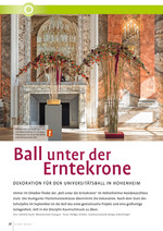 Immer im Oktober findet der „Ball unter der Erntekrone“ im Hohenheimer Residenzschloss statt. Die Stuttgarter Floristmeisterklasse übernimmt die Dekoration. Nach dem Start des Schuljahrs im September ist der Ball das erste gemeinsame Projekt und eine großartige Gelegenheit, sich in der Disziplin Raumschmuck zu üben.