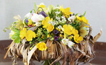 Was kann schöner sein als der Frühling? Da grünt und blüht es weit und breit, die Tage werden länger, Ostern steht vor der Tür. Frühlingsblüher und blühende Zweige werden pur verarbeitet oder mit Federn und Eiern kombiniert. Das Farbspektrum reicht von klassischem Gelb und Orange bis zu Weiß mit zarten farbigen Akzenten.