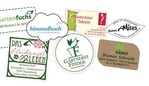 Beim Ausliefern werden Blumen meist mit Verpackung übergeben. Das ist eine Chance, Werbung in eigener Sache zu machen, denn schon ein Aufkleber auf der Verpackung, einem Blatt oder Gefäß vermittelt den Stil des Geschäfts. Wenn Preis, Logo und Kontaktdaten auf dem Etikett untergebracht werden sollen, wird das allerdings mitunter eng. Durch die enormen technischen Neuerungen der letzten Jahre wurden praxisgerechte Lösungen möglich.