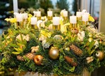 Jörg Zabel beschränkt sich in seinem Blumenstudio in Wiesbaden im Wesentlichen auf zwei Farbbereiche. Rot-Grün ist immer dabei, außerdem Creme - mal mehr Richtung Natur- Gold wie im letzten Jahr, mal mehr Richtung Weiß und Silber. Immer werden fast ausschließlich natürliche Werkstoffe verarbeitet, immer sehen die Werkstücke ein bisschen anders und sehr zeitgemäß aus, und immer tragen sie eine handwerkliche Handschrift.
