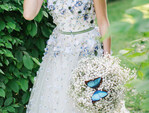 Es muss nicht immer Weiß sein. In der Saison 2019 stehen gebrochene Farben im Fokus. Dieses Kleid stammt von Jürgen Christian Hoerl, der die großen Roben für den Wiener Opernball kreiert. Interessant zu solchen Kleidern sind kräftige, kompakte Sträuße als Farbakzent.