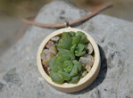 Für Andrea Kurz sind Pflanzen lebensnotwendig. In der Gärtnerei ihrer Eltern verbrachte sie schon als Kind die meiste Zeit mit Blumen und Pflanzen und entwickelte eine regelrechte Passion für Hauswurze und Sukkulenten. Vor einem Jahr begann sie schließlich, selbst Sukkulenten zu züchten. Sie experimentierte mit verschiedenen Substratzusammenstellungen und beobachtete das Wuchsverhalten spezieller Echeveria- und Sedum-Sorten. Da sie für die "Living Gems" möglichst langsam wachsende Pflanzen mit einer hohen Stabilität und einem ausdrucksstarken Habitus benötigt, kamen nur wenige Sorten infrage.