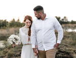 Ein Hochzeitsshooting im Moor - von dieser Idee war Ulrike Heyer sofort begeistert. Floristik zu schaffen, die zur besonderen Athmosphäre des Orts passt, war eine Herausforderung, die sie gern annahm. Über die Farbigkeit und die Materialwahl gelang es ihr, einen Bezug zum Ort herzustellen. Gleichzeitig spielte die Floristin gekonnt mit dem reizvollen Kontrast, der zwischen der reinen Hochzeitsfarbe Weiß und dem fast morbiden Charme der Moorlandschaft entstand.